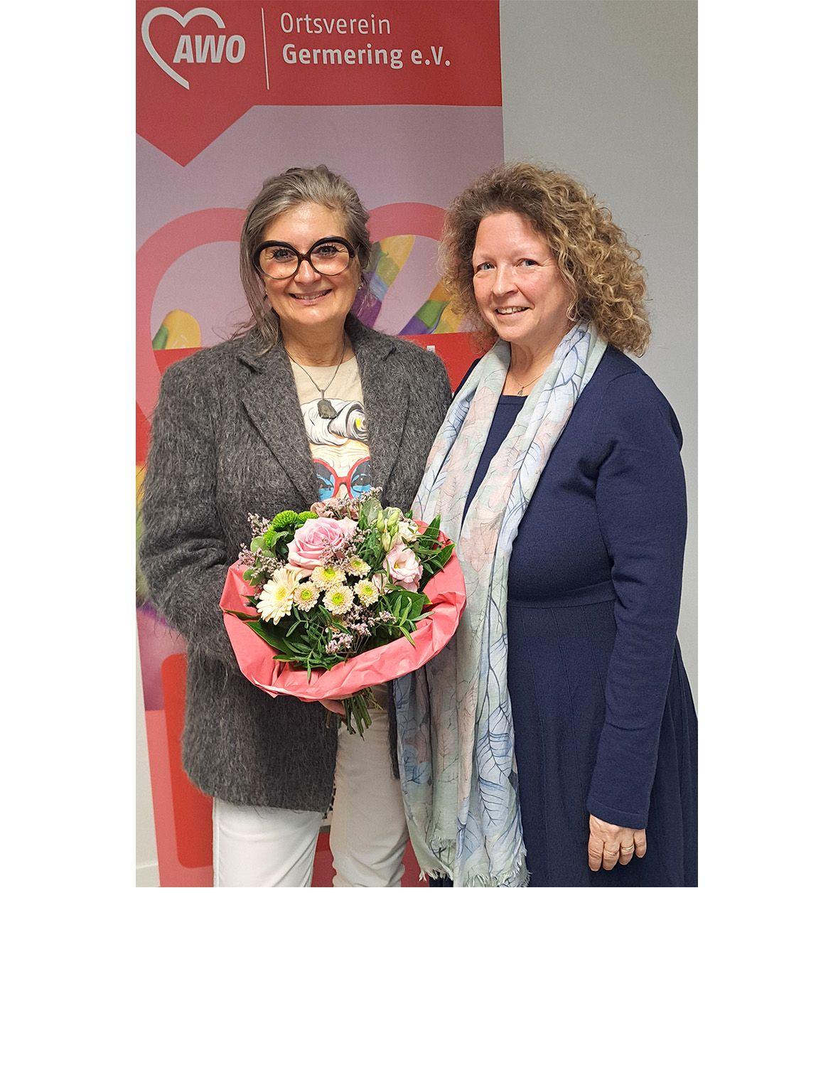 Foto: Annette Zaus, Projektleiterin links und Brit Hupp-Alter, Geschäftsführerin des Ortsvereins Germering (© AWO Germering)