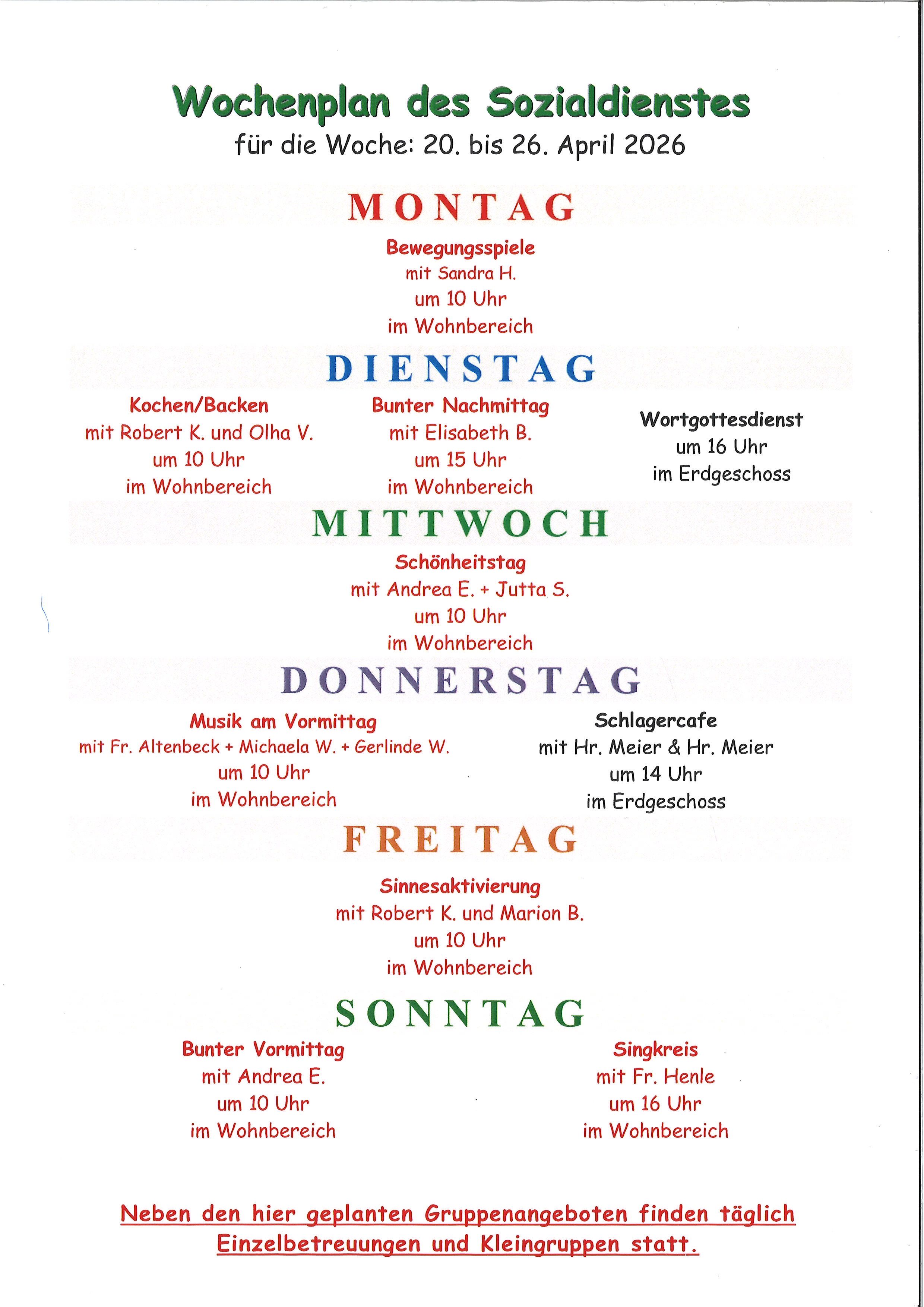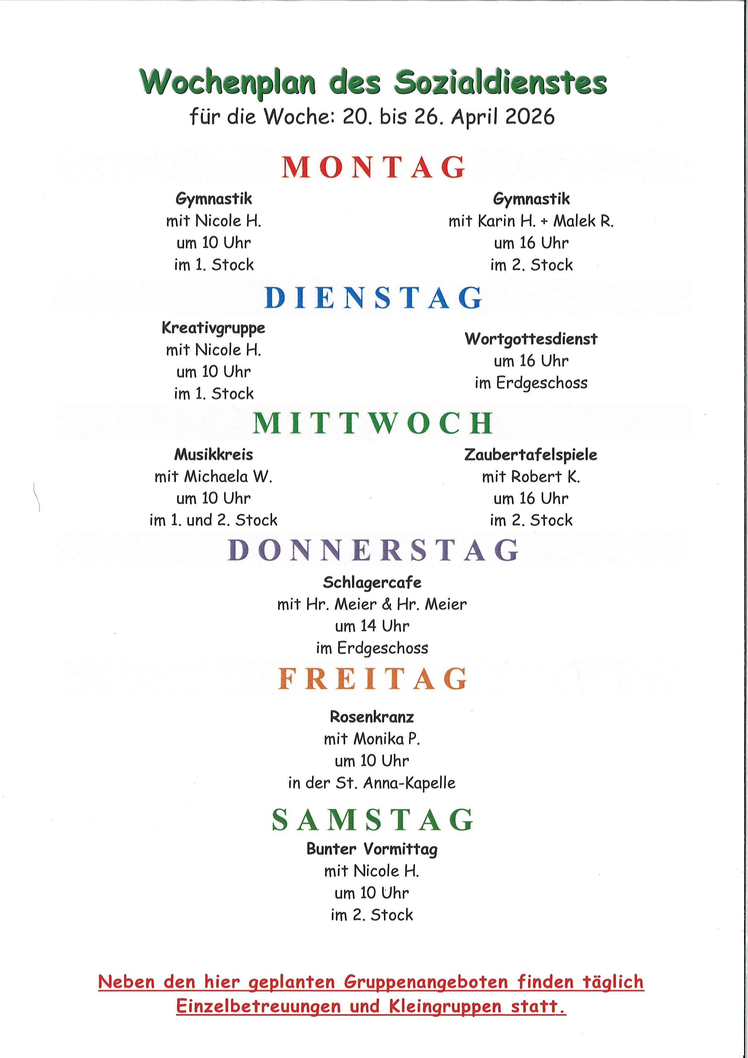 Wochenpläne vom 20.04.2026 - 26.04.2026